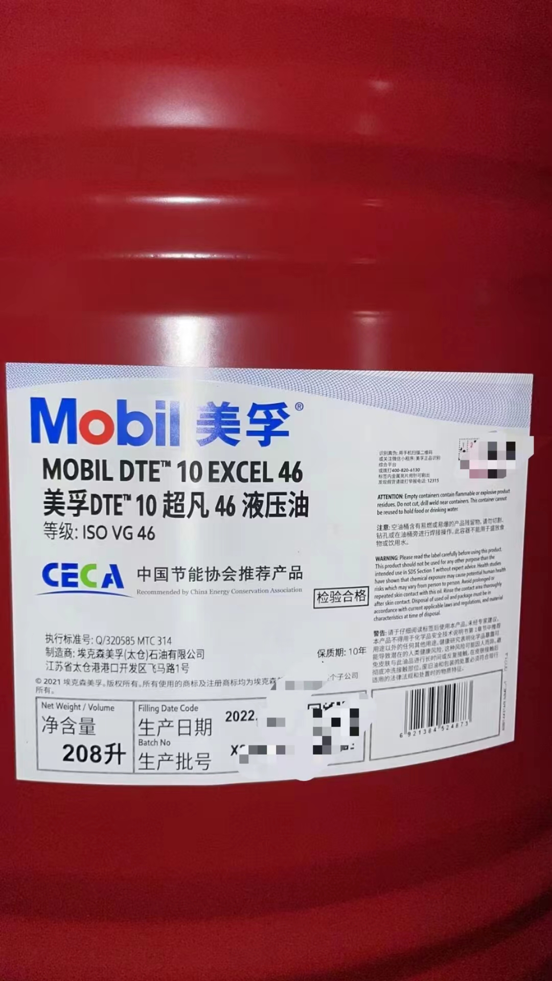 美(měi)孚 DTE 10 Excel46/68/100/150顯示☆¶出其較高(gāo)的(de)黏度指數及顯著的(de)剪力穩定性。