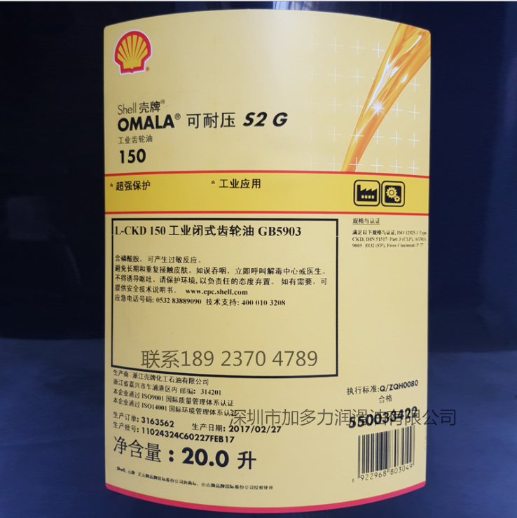 殼牌可(kě)耐壓220齒輪油 shell omala S2G 22φ§←0
