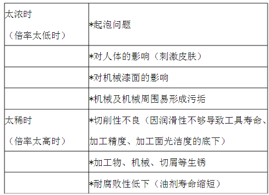 1.濃度管理(lǐ):由于使用(yòng)液的(de)濃度直接關系到(dà αo)使用(yòng)液的(de)各項性能(néng)"↕π,如(rú)濃度異常,則可(kě)能(néng)會(huì)發生(sh∑≥ēng)以下(xià)問(wèn)題: